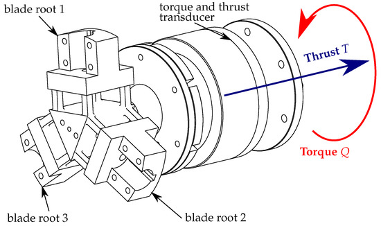 The generic turbine model is equipped with a dedicated load cell measuring the torque Q and thrust T applied on the main rotation axis of the rotor. This waterproof transducer (Figure 2) is positioned upstream of the rotor seals to prevent parasitic friction effects. The torque and thrust transducer are custom made by the French company SIXAXES [22] in partnership with Ifremer. The measurement ranges of each of the instruments are summarised in Table 3.