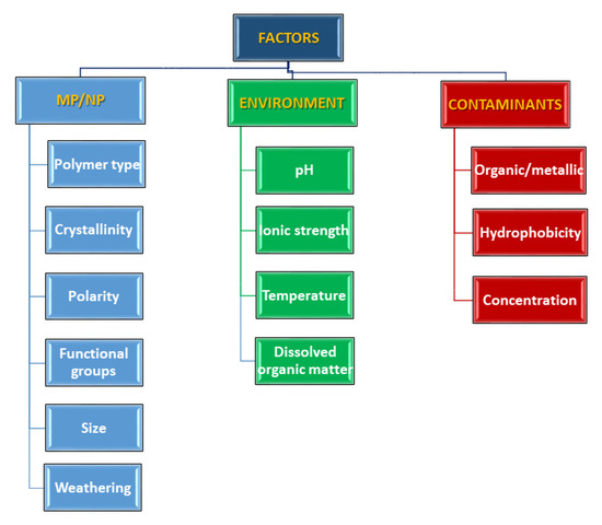 Factors affecting the sorption of contaminants in micro- and nanoplastics (adapted from [151]).