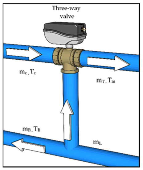 Therefore, the difference between the bypassed flow rate () and the flow rate coming from the load () is the flow rate of heat exchanged in the cooler () [27].