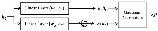 where and are the weight and bias of the linear mapping, respectively. The bottom layer is a linear mapping, followed by a softplus activation. The softplus activation is used to ensure the variance σ > 0. The linear mapping and softplus activation with respect to the bottom layer operate as follows: