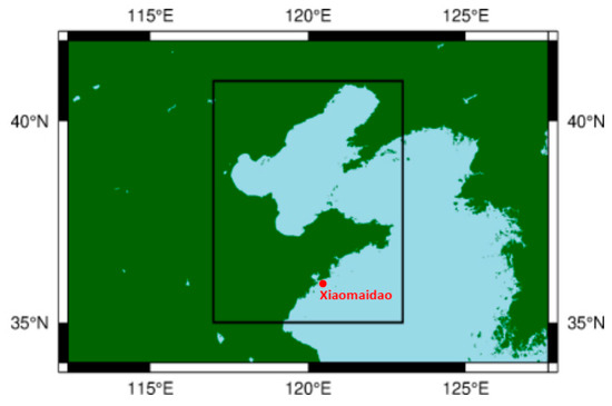 The study area is the Bohai Sea and the northern part of the Yellow Sea (35°–41° N, 117°–123° E), as shown in Figure 5. The submarine topography in the study area is relatively flat, with an average water depth of about 18 m. The maximum tidal range is about 2.7 m. The study area is dominated by wind waves and is greatly affected by the monsoon.