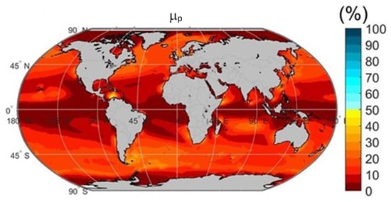 Figure 14 shows the global distribution of µp. As the criteria for optimal operability is much more restrictive than those stablished for operability, the µp values are much lower than the µ0 ones, see Figure 5. Again, the trade wind belts show the largest values of µp. The maximum values in each oceanic region are: