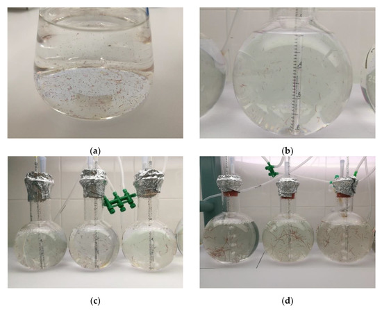 The germlings obtained in the present work—either carpospore-derived tetrasporophytes or tetraspore-derived gametophytes—were used to implement start-up indoor cultures of Gracilaria gracilis with progressive scale-ups following growth (Figure 4).