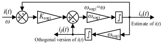 Figure 6 is a classical structure of a single SOGI. Ksogi and ωsogi represent the filter gain and its resonant frequency, respectively. iα(t) and iβ(t) are output signals of the single SOGI.
