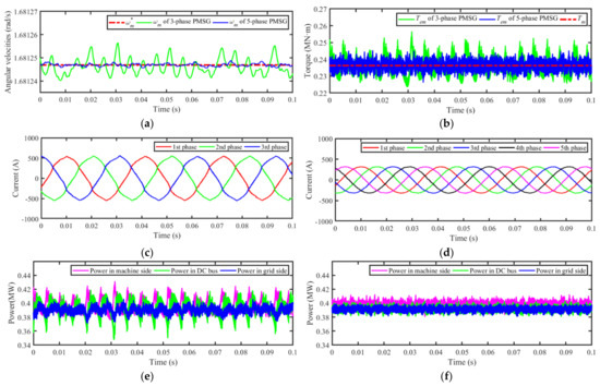 The placed five-phase PMSG is able to contribute more reliability and availability for the conversion chains since it has higher structural redundancies relative to classical three-phase generators. Its main advantage is that it can still operate with a degraded mode when one or two phases are absent [2,3]. In practice, the phase losses are mainly attributed to disconnected phase windings, fails of rectifier leg or isolating actions of the protectors. Nevertheless, once a phase-loss situation occurs, this leads to inter-phase imbalances in post-fault operations. For this reason, oversized torque ripples, high level vibrations and noise pollution become unfavorable factors in the whole power generation system [4,5]. Developing FTC algorithms aiming at the open circuit of the phase(s) are necessary for the five-phase PMSG-based TCECS.