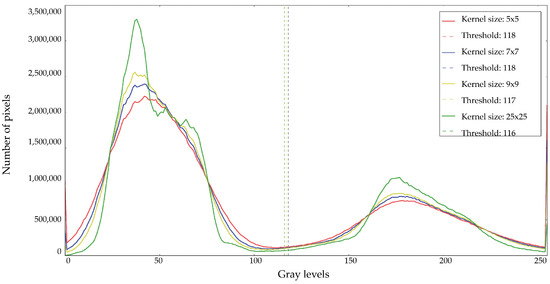 - Kittler, J.; Illingworth, J. On threshold selection using clustering criteria. IEEE Trans. Syst. Man Cybern. 1985, 5, 652–655. [Google Scholar] [CrossRef]