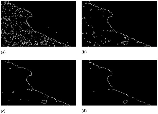 - Liu, H.; Jezek, K. Automated extraction of coastline from satellite imagery by integrating Canny edge detection and locally adaptive thresholding methods. Int. J. Remote Sens. 2004, 25, 937–958. [Google Scholar] [CrossRef]