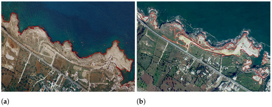 - Alicandro, M.; Baiocchi, V.; Brigante, R.; Radicioni, F. Automatic shoreline detection from eight-band VHR satellite imagery. J. Mar. Sci. Eng. 2019, 7, 459. [Google Scholar] [CrossRef]