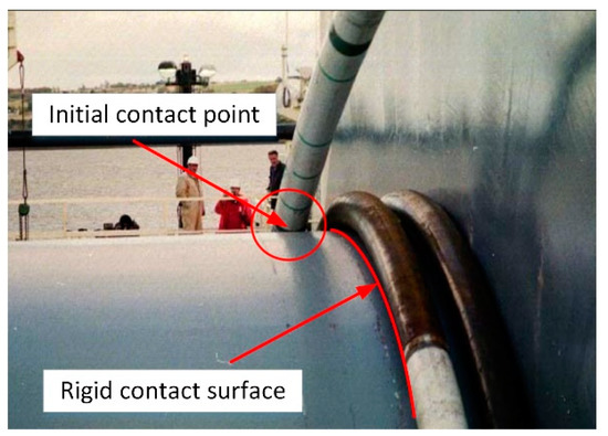 After a welding inspection at the onshore base, the pipeline is reeled to the reel with the cooperation of the reel and the tensioner. As shown in Figure 1, the pipe is being reeled along the plane of the inner diameter of the reel. In this process, the pipe deformation will ngradually change from an elastic to elastic-plastic state. The pipe section will gradually deform due to being subjected to the bending moment of the reel and the tension of the tensioner.