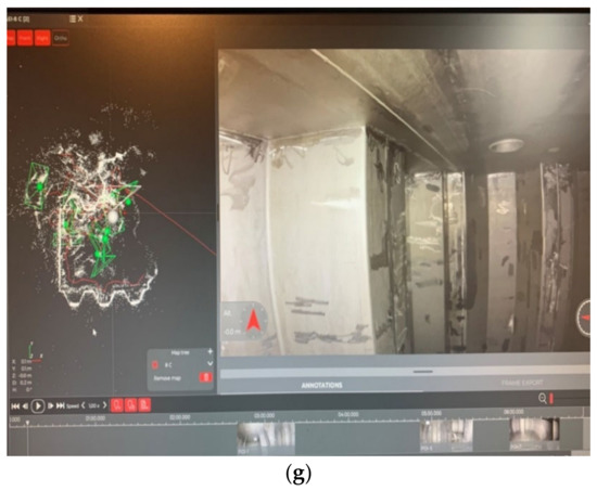 Overview of the operational sequences considering a drone as a case-study: a typical RAS calibration situation (a) and supervised-control during classification survey (b); a drone before “accessing” an enclosed space (c); drone during survey and inspection (d); visual image captured through drone (left) (e,f); data acquisition (g). Data can be live-streamed through video conference to facilitate remote surveys if required.
