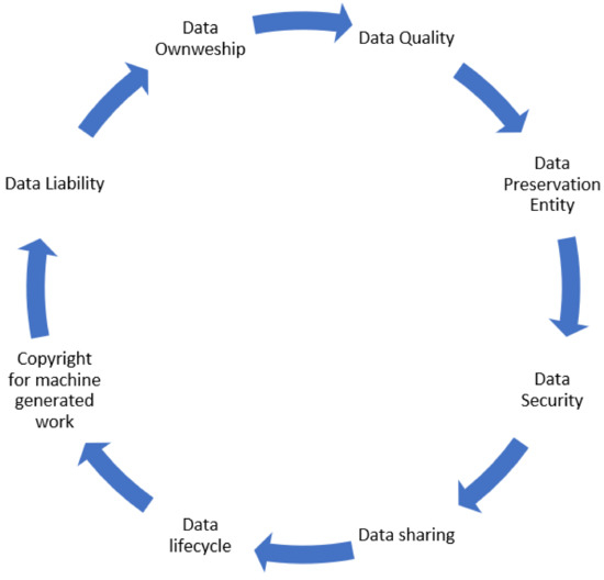 RAS-interventions today are very data-centric, as they are translated into activities such as data acquisition, data transfer, data storage, and finally data analyses, which remain the principal foci. Although RAS applications—as they exist today—are best described as systems with “human-in-the-loop”, their relevant capabilities are promising, leading to the projection that drones, crawlers, and ROVs will achieve full autonomy in the near future [13,15]. As RAS advances towards full autonomy, there is a clear need to spear through the current data governance and corresponding management practices to assess whether procedural details, rules, and requirements follow a water-tight approach securing much needed precautions that would otherwise give rise to complications from the get-go stage.