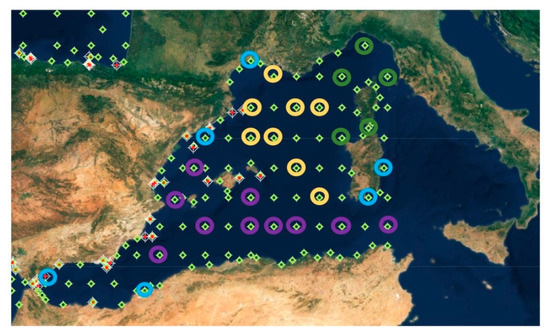 Although the Mediterranean Sea is weighted and studied as a whole, the fact is that it is formed by twelve seas, most of them known by their own name. Of all these seas, the Ligurian, the Tyrrhenian and the Balearic Sea are the main seas of interest for this survey since the points studied are mostly placed in their waters, which depicts climatological differences (Figure 6).