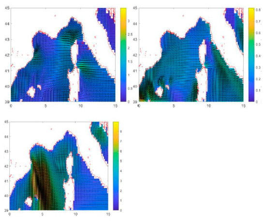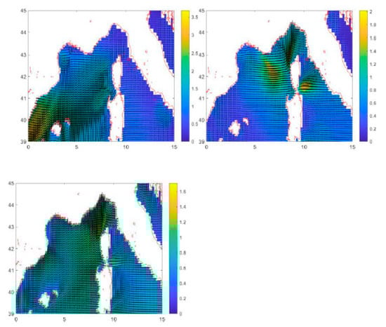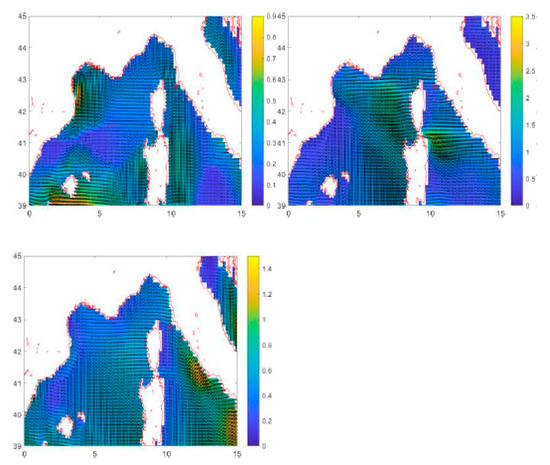 Comparing these data with the interpolated waves area generated by the SIMROUTE for the days selected of each month, a similar behavior was observed. From the months of December to January, the swell represented has a height of 2–3 m and, in some points, it reaches up to 5 m (Figure 2). Conversely, for the months from March to May, the height of the waves diminishes gradually, never surpassing 3.5 m (Figure 3). From June to August, the season that presents the best conditions, the swell does not surpass the 2 m, with certain exceptions in some points close to Cape Corse in July. Lastly, whereas September and October present some similar conditions compared with the period of March–May, November presents an increase at the height of the swell, especially in area 2, that would correspond at a maritime storm, very common in this month of the year.