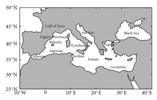 Map of the Mediterranean Sea. Source: Soto-Navarro, F. J., & Criado-Aldeanueva, F.; 2012 [19].