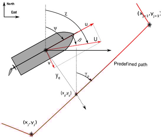 Without a loss of generality, a straight path-following control system for marine autonomous surface ships is considered, as presented in Figure 2. In order to simplify the problem, some assumptions and physical constraints were made: