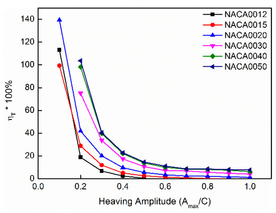 Propelling efficiency changing with Amax with Sr = 0.3 and Re = 2 × 104.