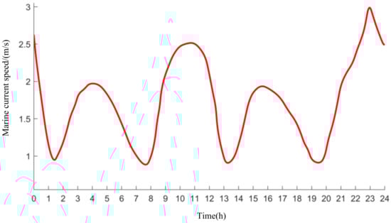 The marine current velocity (as shown in Figure 8) in this paper is the real marine current data between Zhai Ruo Shan island and Xiao Zhai Ruo Shan island of Zhou Shan archipelago, Zhe Jiang Province [32]. In the simulation of this paper, the time scale is very large, and the core problem is to solve the operational efficiency of VRB over 24 h. Therefore, the power disturbance caused by the swell effect is not considered.