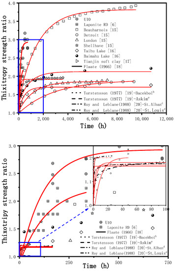 - Huo, H.F.; Qi, L.; Lei, H.Y.; Yu, G. Analysis and experimental study on thixotropy of Tianjin soft clay. Chin. J. Rock Mech. Eng. 2016, 35, 631–637. [Google Scholar]
