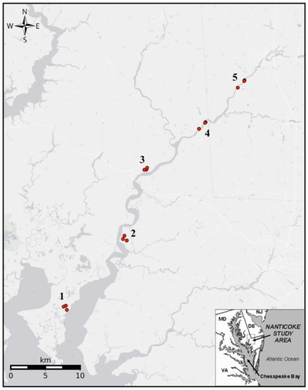 - The Nature Conservancy. Nanticoke River Bioreserve Strategic Plan; The Nature Conservancy: Bethesda, MD, USA, 1998. [Google Scholar]