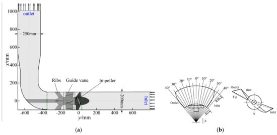 Axial−flow pump geometry. (a) Computational domain; (b) Impeller blade geometry.