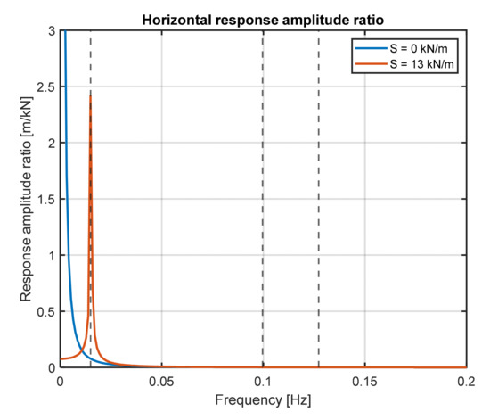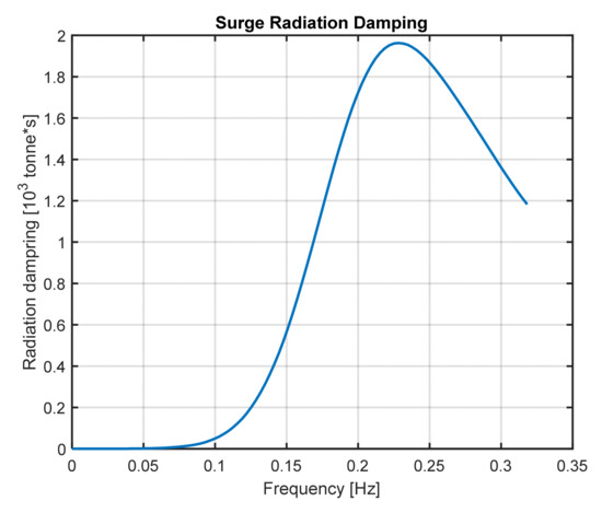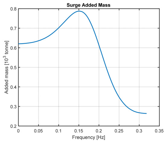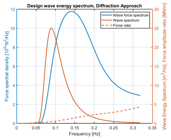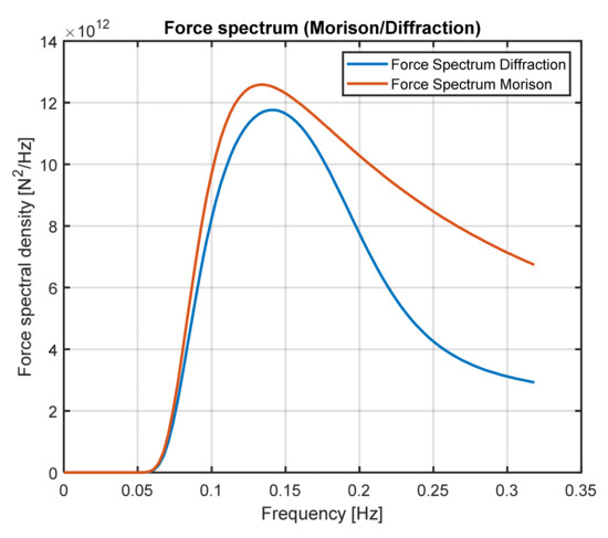 If the structure’s resonant period is not within the wave spectrum periods (zero up crossing period (TZ) and peak period (TP)), it is possible to apply a simplified equation (Newman approximation) to express the low-frequency excitation spectrum in the frequency domain [38]: