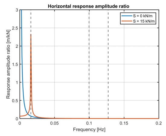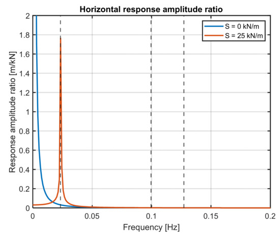 This study is focused on the motion in surge direction and the irregular wave loads are analysed as a superposition of harmonic loads. Solving the equation of motion for the damped system, considering a harmonic load, it is possible to express the horizontal response amplitude ( x ^ ) as [15]:
