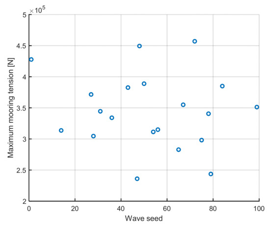 Figure 20. Maximum mooring tensions for different seed numbers.