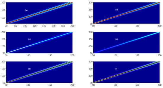 Coupling coefficient affected by cold eddy: (a) 10 km, (b) 50 km and (c) 90 km away from the source and coupling coefficient effected by warm eddy (d) 10 km, (e) 50 km and (f) 90 km away from the source.