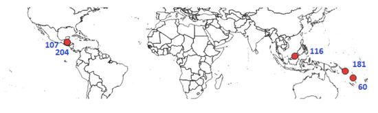 3.4. Variations in δ18O Concentration in Speleothems in the Tropical Pacific