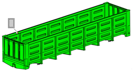 It should be mentioned that this unloading method may cause serious damage to structural elements of the body because the geometry of the body is not fitted to interaction with the grab. The most frequent damage to the bearing structure of a body during unloading with a grab are cracks, deformations, ruptures of the top cord and weld joints, etc. Additionally, the top cord of the frame suffers the most (Figure 2).