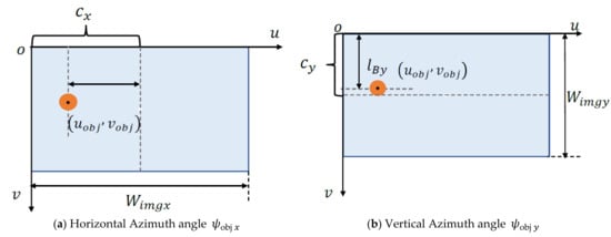 Similarly, from Figure 6b, the relationship between ’s vertical azimuth and the longitudinal coordinate of the DS center in the image is as follows: