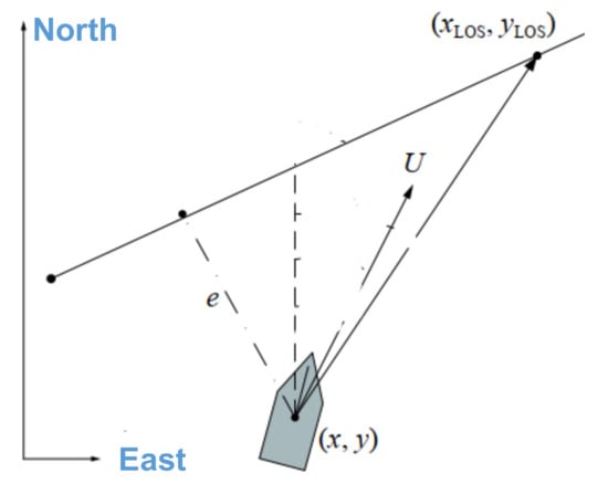 To track the target line, the Line of Sight (LoS)-based guidance approach is used for calculating the heading angles of the AUV as shown in Figure 7: