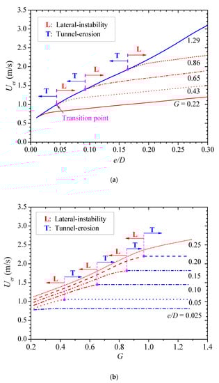 - Based on the criteria for the lateral instability and tunnel erosion of the pipe (Equations (20) and (21) in Section 4.2), we could then examine whether the two instability modes were triggered.