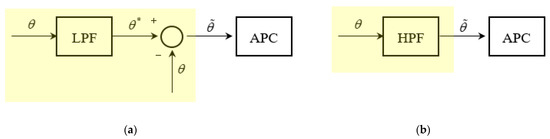 The APC is a feedback control system to minimize pitch RMS, feedback pitch value, and change impeller revolution rate actively. The desired pitch value, which is a reference value () of controller, is a low frequency component of . Figure 9 shows the reference generating method.