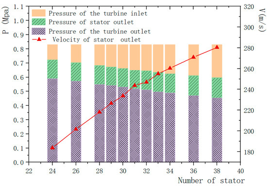 The influence of the number of stator blades on the pressure of the turbine inlet and outlet, the pressure of stator outlet and the velocity of stator outlet.