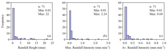 3.3. Descriptive Analysis of Rainfall Height and Intensity