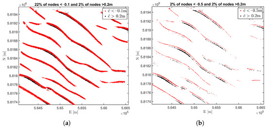 The principle of BLUE implies that the estimator must ensure minimum variance and must be unbiased. The BLUE [32] of the unknown parameters , the adjusted observations and the residuals are obtained by: