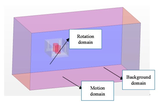 As Figure 7 shows, the whole computational domain is divided into three sub-domains: background domain, rotating domain, and moving domain. The background domain and the moving domain are connected by overset. The implementation of overset method can reduce the risk of computational divergence resulted from the large movement of the carrier. The rotation domain and the background domain are also connected by the overset method.