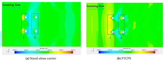Flow pressure for the stand-alone carrier and FTCPS. (a) Stand-alone carrier; (b) FTCPS.