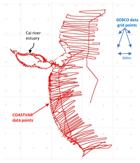 Bathymetry data input includes GEBCO data grid points and COASTVAR measured topography data points.