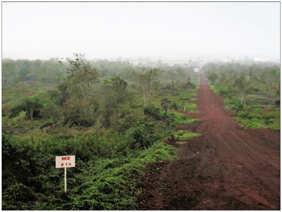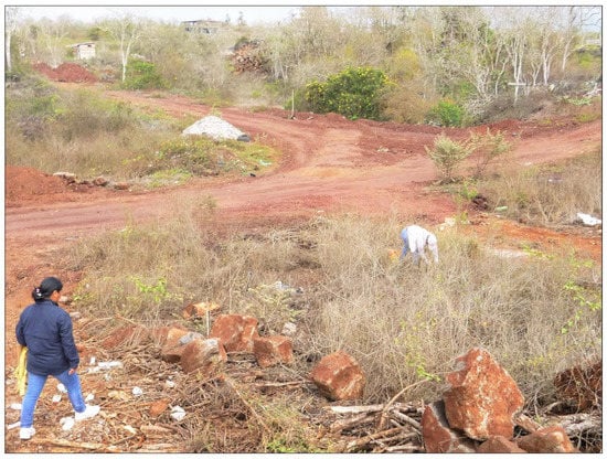 The landscape looked desolate. Large lots lay cleared, and piles of earth accumulated at the intersections of gravel roads. In the process, construction workers had leveled much of the vegetation, including rare plant species. The same fate awaited the remaining vegetation. Although depressing, for Celia it was not surprising. She had lived on the Galápagos Islands for three decades and witnessed the dramatic increase in urbanization over time. Once an exclusive tourist destination for a few private yachts, the Galápagos began at the beginning of the 1990s to attract more tourists and, in turn, mainland Ecuadorians seeking work. Celia and her family were among those migrants. Since then, the number of Galápagos residents has grown from around 9000 in the 1980s to around 30,000 today. The expansion of Puerto Ayora, which we had just left, was a prominent sign of the growth in tourism and the human population. Roaring in the background with traffic and construction noise, the city looked like a sea whose edge was swelling and growing, preparing to roll forward another wave of construction on the future neighborhood north of the bay, where we were standing (see Figure 1).