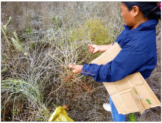 Lantana camara seeds had taken advantage of urbanization and established new sites in the archipelago and, from there, moved to even more sites. While a consequence of human pressure on the Galápagos’ ecosystems, invasive species such as Lantana also amplify anthropogenic change: they reduce the abundance of endemic plants and adversely affect the nesting habit of endangered avian species endemic to the Galápagos, such as the dark-rumped petrel (Rentería Bustamante and Ellison 2004). In El Mirador, the newly denuded terrain was accelerating the spread of Lantana. But, with or without the “help” of urbanization, Lantana’s spread was impossible to stop. Celia saw this as a sign of the accelerating degeneration of the human and natural fabric of the Earth—the end of the world. Aware that she could not reverse its course, she was nevertheless busy collecting the imperiled endemic plants. By uprooting cacti, she was determined to give them a second chance in a new home elsewhere: “When the paradise comes, these plants will be already there.” Her vision of a terrestrial paradise colors her hopeful anticipation of the future and governs her actions in the present. As much as she could, she salvages plants that the establishment of the paradise will glorify through its ecological restitution (see Figure 4). “You need to work towards the paradise,” she told me with conviction. She smiled as she declared, “I’m planting the seeds of the future” (“estoy sembrando las semillas del futuro”).