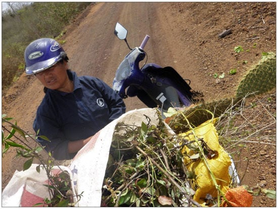 Celia needed endemic cacti (Opuntia galapageia) for a garden she had been commissioned to create. With her assistant, Luisa, they carved a little circle of dirt around the plant to avoid severing its roots. Using small squares of cardboard, they carefully uprooted each small cactus and put them in the boxes hanging to each side of their motorcycles (see Figure 2). To test my confidence as I prepared to help, Celia told me with a sardonic smile that, once past the initial discomfort, the cacti’s spines would eventually stop hurting me and start talking to me. Luisa, perhaps not new to the joke, simply looked at her punctured and seemingly permanently swollen hands and prepared to work.