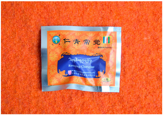 The packaged precious pill Rinchen Drangjor, sold as Renqing Changjue in Lhasa. Photo by author.