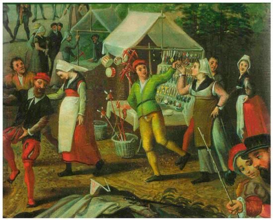 | 12 | Pieter Aertsen, Retour d’un pèlerinage à Saint Antoine (c. 1500), Muséedes Beaux-Arts de Belgique, Brussels, paints a stall with pilgrim souvenirs and toys, including small windmills, drums, and crossbows. |