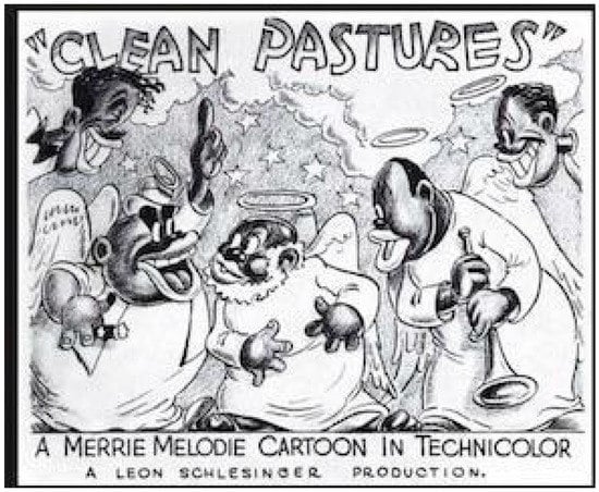 Black religion caricatures, Clean Pastures cartoon, 1937.
