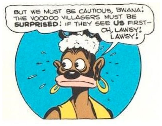 | 14 | One of the first African American jungle comics characters, Lion Man, appeared in a leading role in the single issue of the black comics publication All-Negro Comics, in 1947. The popularity of graphic Voodoo themes also brought about the casting of white lead characters with names such as Doctor Voodoo, Voodah, and Vuda. See (Savage 1990, pp. 74–77). On the black Voodoo priest in the comics see (Jones 2016). |