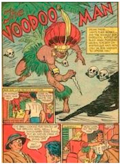 Pluralism and heterogeneity were defining traits of black religion in the US from its very beginnings, and spiritual diversity remains an accepted part of the culture, historically strengthening the racial solidarity and inclusiveness of black communities. However, prior to the 1960s, Africana or black diaspora religions such as obeah, Santeria, and Vodou were viewed by most Americans as exotic and strange, with foreign gods, foreign practices, hailing from foreign places. Negative perceptions of these Africana traditions entered into portrayals of black religions in the comics at an early point. I use the phrase graphic Voodoo to refer to the ongoing characterization of Africana religions as insurgent and racialized, overdetermined by associations with sorcery, and presumed to be violent and dangerous. It is important to underscore that these discursive formations were inventions, wholesale fabrications, with little to do with actual religions and historical practices. Graphic Voodoo became a signifier for spiritual alterity that marked black “otherness” with resonant elements that disfigured two historical religious sources: indigenous African sacred traditions and Haitian Vodou. As a metonym for Africana religions, graphic Voodoo became a stand-in for race and religion as presented in many widely circulating comic books in the US, especially those of the action-adventure and horror genres.11