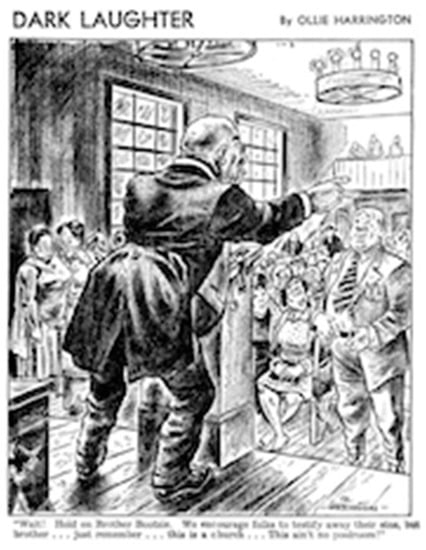 Black preacher as seen in newspaper comic strip. Dark Laughter, 1947.