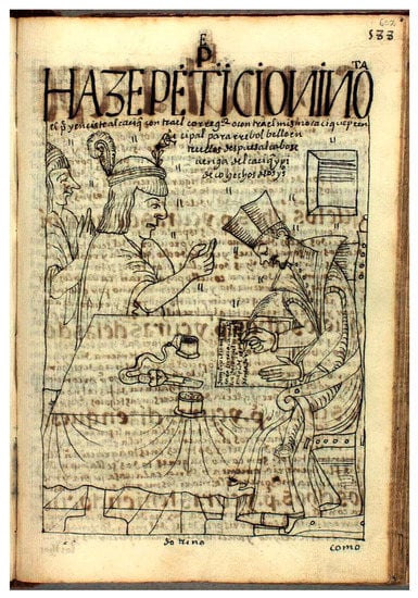 This interrelation between word and image, initially evoked in the work of Aristotle, for whom thought functions through a coherent concatenation of images, was recovered by Franciscanism, disseminated through (the Jesuit concept of) ‘composition of place’, and defended at the same time as controlled at the Council of Trent (1545–1563). It was accepted in general by the ars memoriae and, building on the successes of emblematic creations following the publication of Emblematum liber, it would find renewed justification in the context of Indian reality (). In effect, beginning with the mnemotechnic purpose of the figurative or geometric image of the Amerindian, the intention of which was to “represent the central event on which they wished to fix their memory” ()—events and memory—the novo-hispano rhetoric would turn that relation into artificial memories and knowledge, in the Pre-Colombian style.